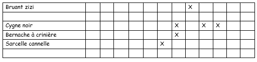 Tableau des observations mensuelles au fil des années pour le marais de Biron 1994-2020.